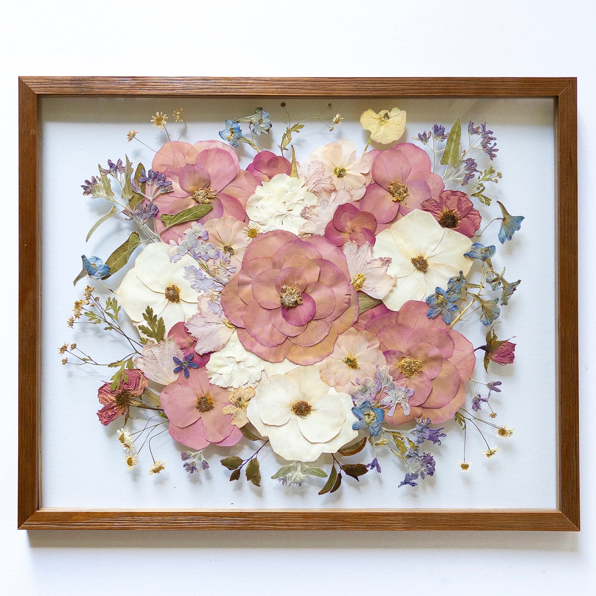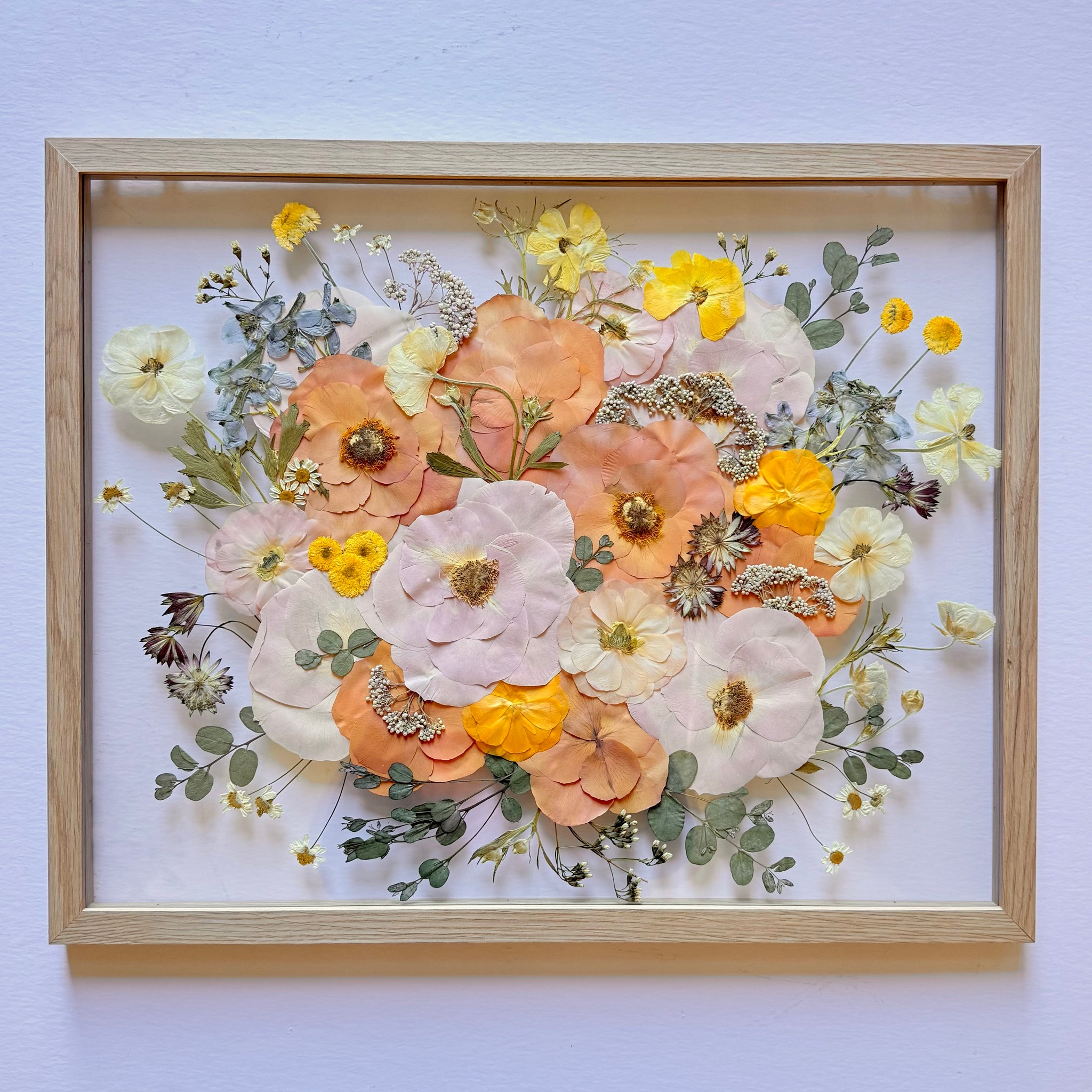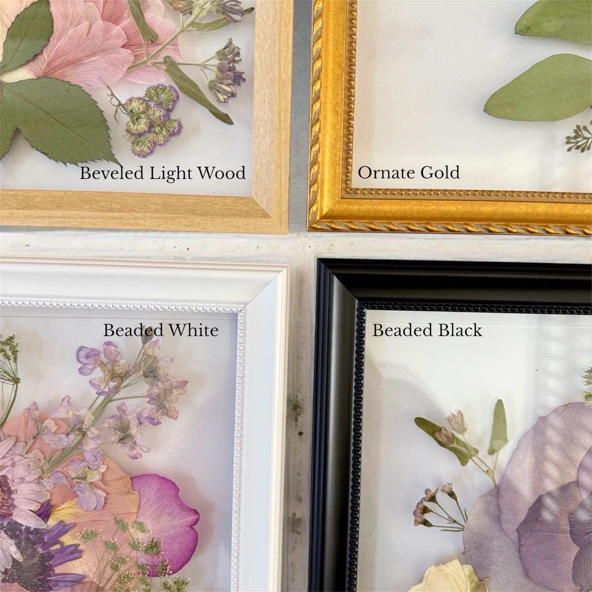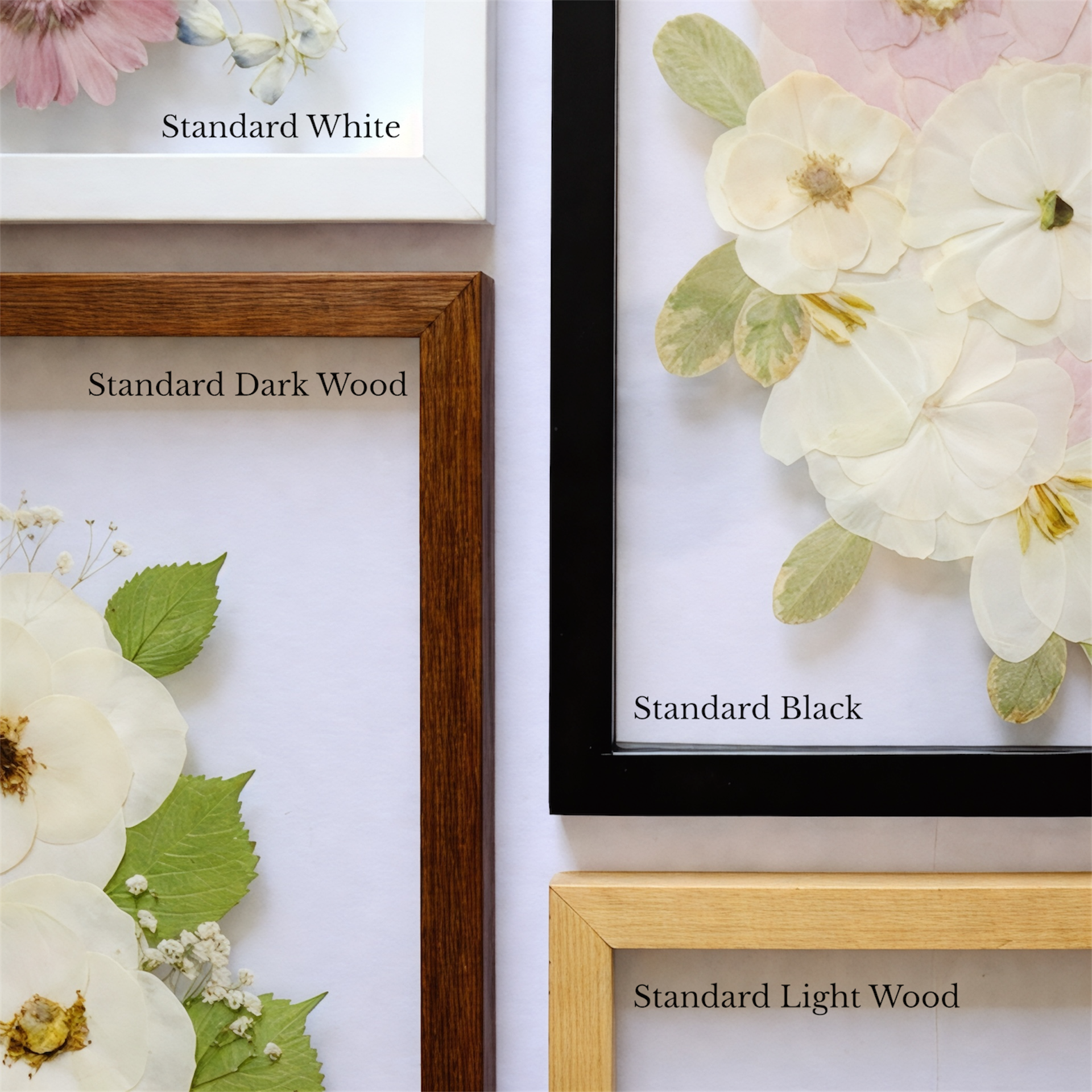 Our 16 x 20" frame is our most popular option, as it will fit most or all of your bouquet.